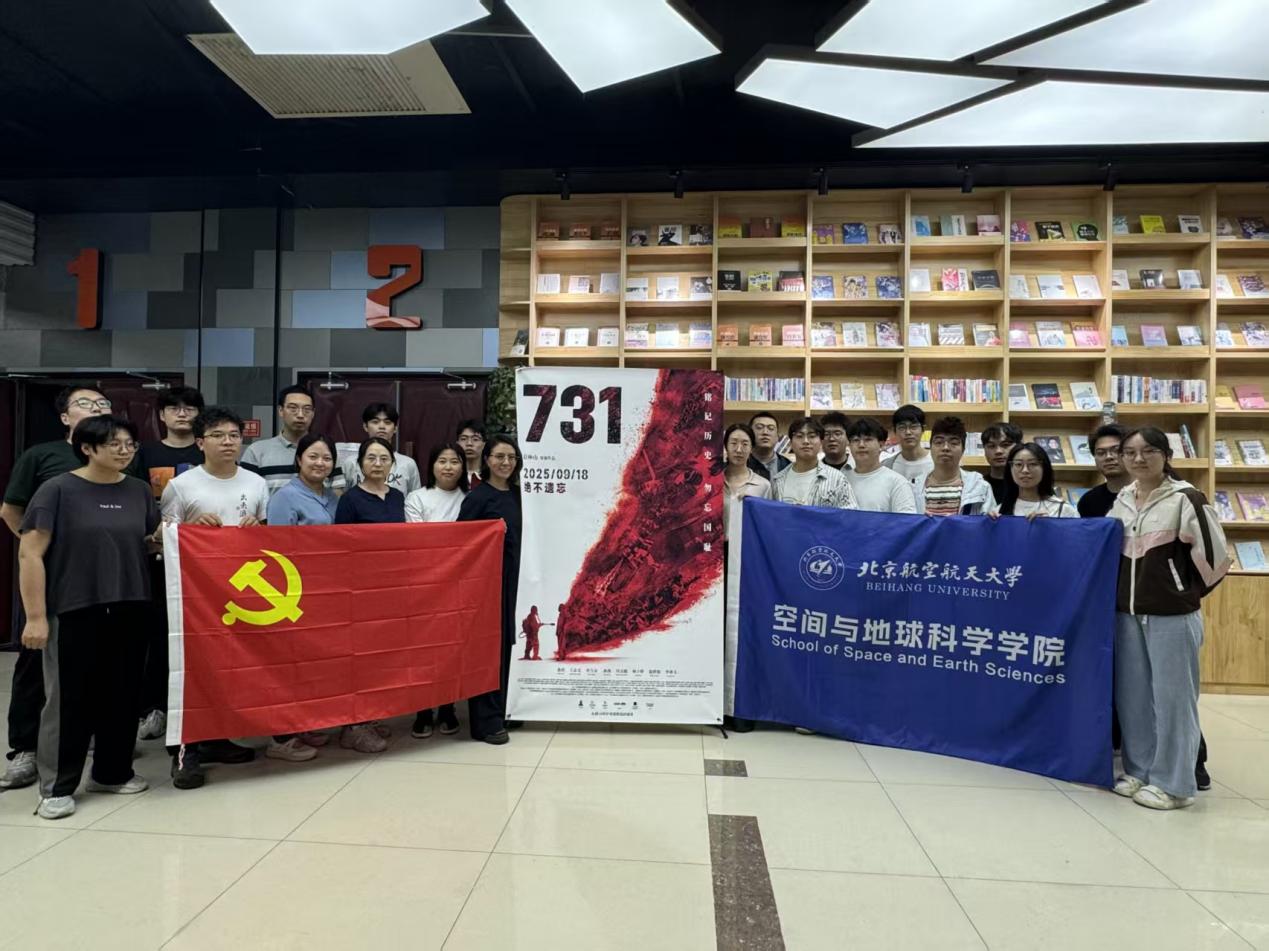 为纪念中国人民抗日战争暨世界反法西斯战争胜利80周年,深化跨单位联学共建机制,推动爱国主义教育与专业实践深度融合,引导青年学子铭记历史真相、传承红色基因,9月24日,空间与地球科学学院空间系博士生党支部联合应急管理部国家自然灾害防治研究院空间信息研究中心党支部共同开展第二次线下共建活动,组织两支部党员、入党积极分子代表集中观看历史纪录片《731》。研究中心主任、党支部书记、校友泽仁志玛,研究中心党支部宣传委员黄河,空间学院专职辅导员冯骥参加活动。